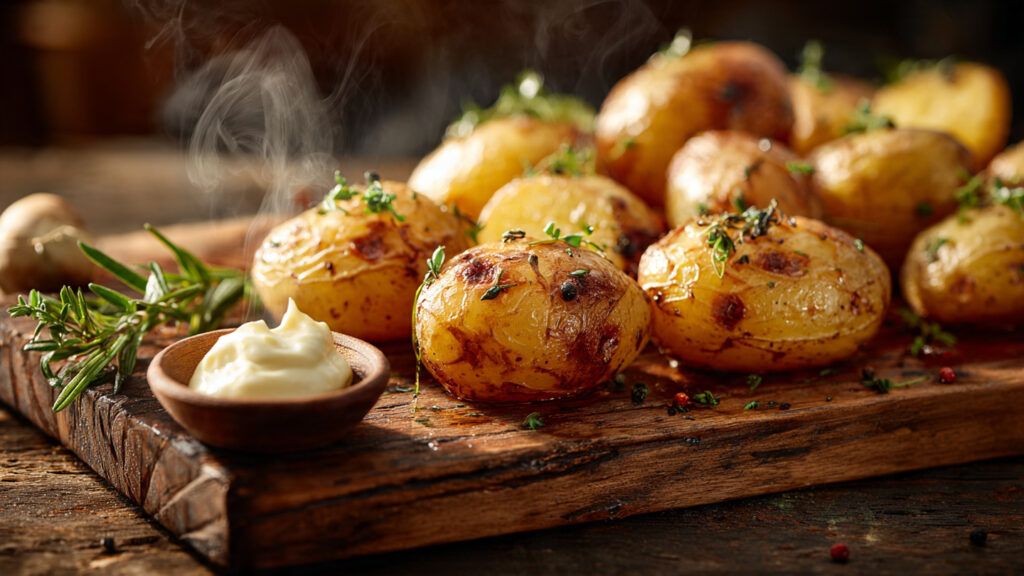 Historicamente, essa técnica remete à culinária camponesa europeia, onde o aproveitamento integral do alimento era vital. Em termos de ciência gastronômica, a batata rústica é o veículo perfeito para a Reação de Maillard, um processo químico entre aminoácidos e açúcares redutores que cria o sabor amendoado e a cor dourada característica.