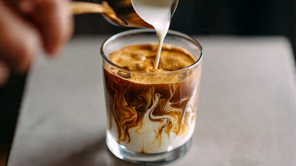 Essa estabilidade é o que permite que a espuma dure até o final do copo, criando aquela transição deliciosa entre o creme amargo e o leite doce no fundo.