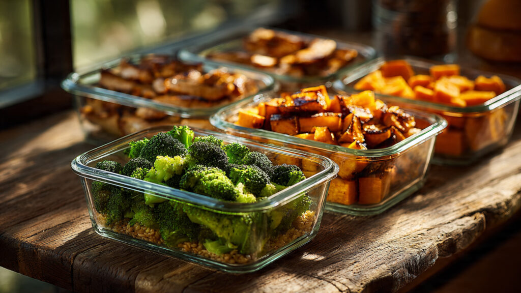 Conservação: Marmitas com legumes que soltam muita água (como abobrinha e chuchu) devem ser consumidas nos primeiros 3 dias. Para os dias 4 e 5, prefira legumes mais “firmos” como cenoura e brócolis, ou congele as porções imediatamente após o resfriamento. Nunca feche a marmita ainda quente, ou o vapor condensado deixará tudo encharcado.