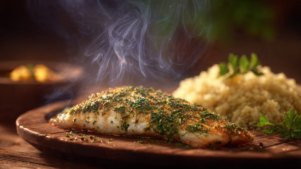- Tempero: Seque bem o peixe (fundamental para a reação de Maillard) e tempere.